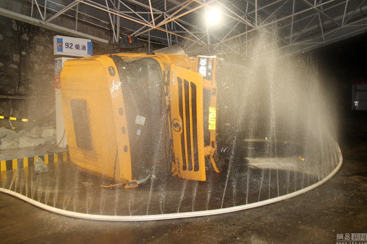 事故发生后,加油站工作人员第一时间启动应急预案,将油管阀门关闭,快速协助受伤的驾驶员从损毁的驾驶室内救出,并禁止车辆入站,禁止一切火源。
