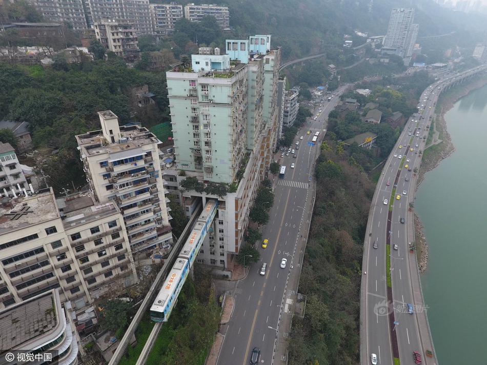 据了解,李子坝站与这栋楼是同时设计、同时修建的,并没有谁先谁后。