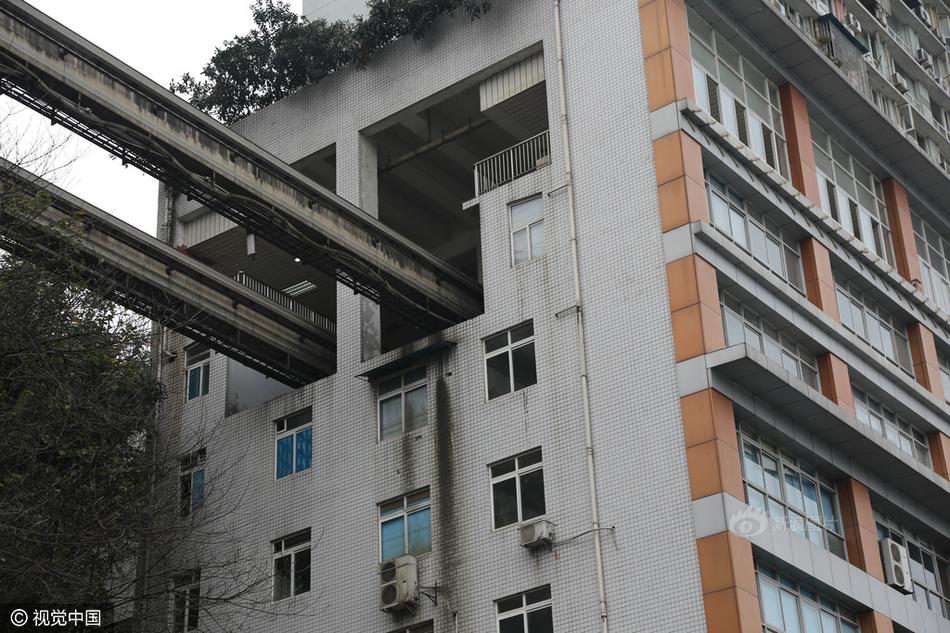 托举轨道的柱子看不见,而是埋在下层的房子里。从大楼第一层算起,轨道有6根托举柱子,每根长约22米。