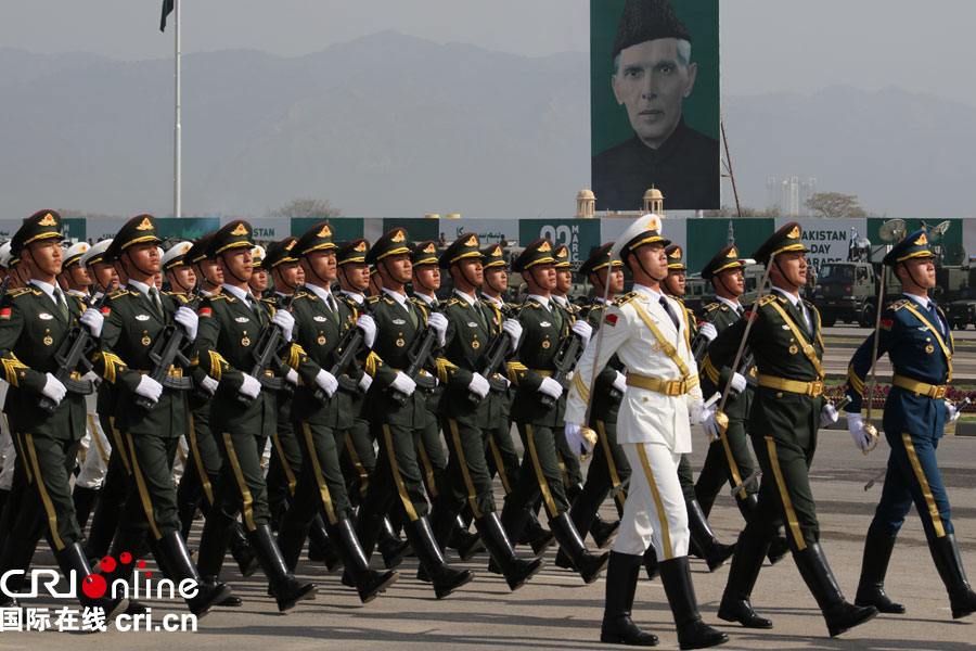 国际在线报道(王琦记者王琦)为准备3月23日的国庆阅兵仪式,巴基斯坦于19日在首都伊斯兰堡举行首次全装彩排。引人瞩目的是,中国人民解放军陆海空三军仪仗队第一次赴巴基斯坦参加阅兵活动。