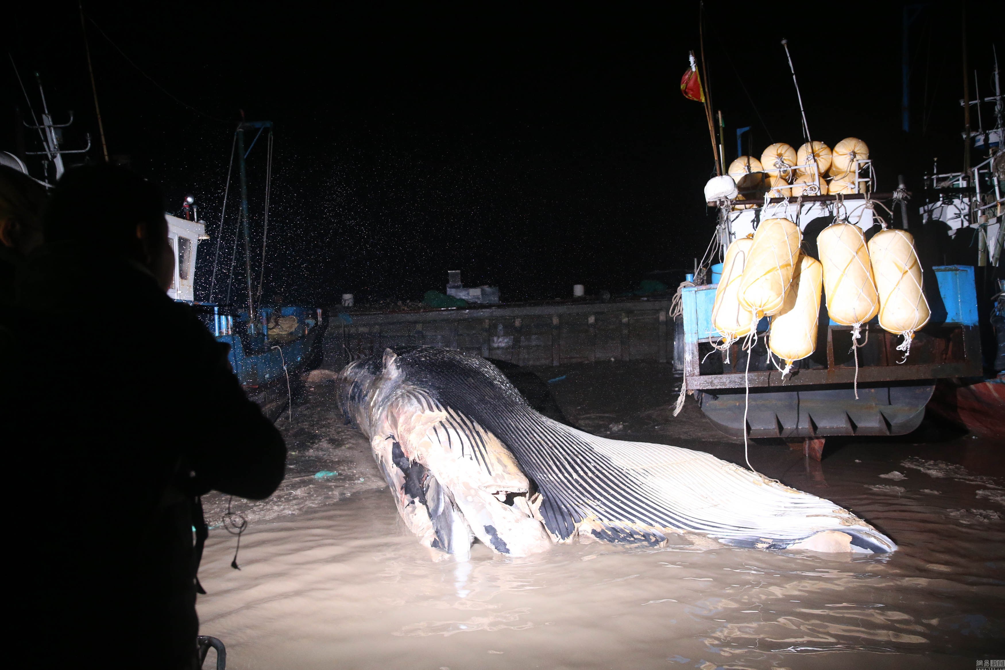 上海现死亡鲸鱼 鱼头缺失鱼鳍被割