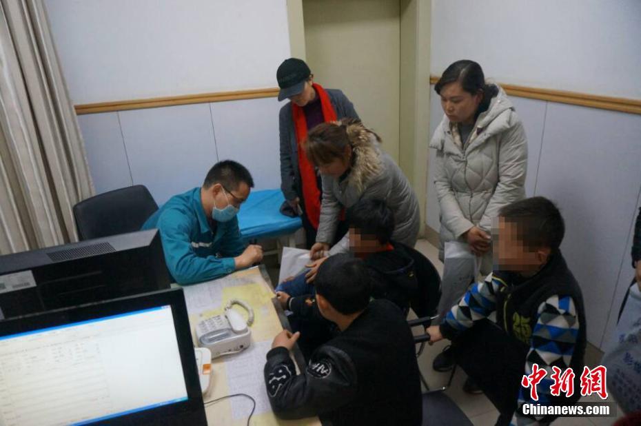 医生对受伤孩子进行细致的诊查。 韩章云 摄
