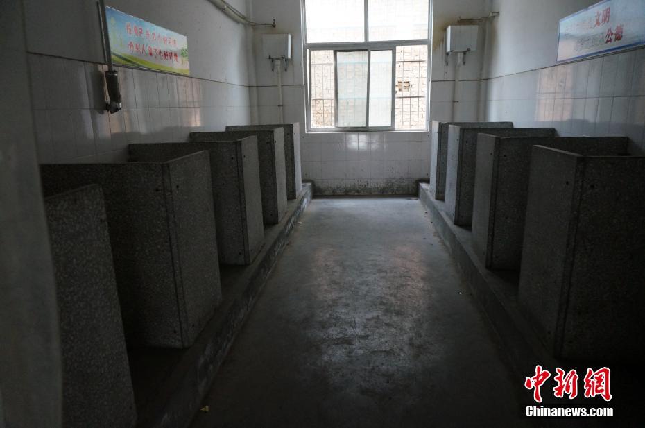 记者当天下午三点到达事发学校,了解到事故原因是:该校当天举行全校月考,学生在早上8点半考试前大量集中上厕所,在从二楼下到一楼时有学生跌倒,发生踩踏。图为学校厕所内部。韩章云 摄