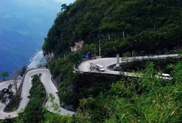 整条公路俯瞰就像是水平的,上下重叠的路面,你要转折十三道急弯才能到达坡顶。