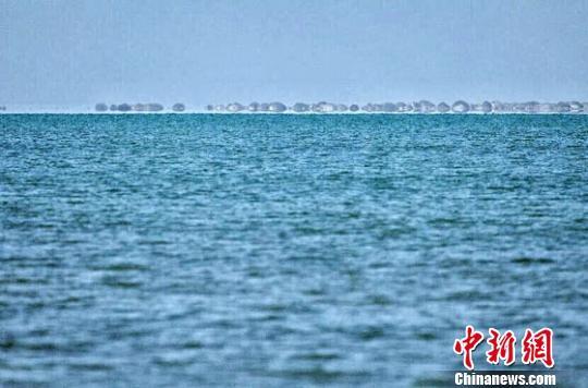 近日,敦煌历史上最大的湖泊哈拉诺尔湖干涸60年后重现碧波。图为漫水面积达24平方千米的哈拉诺尔湖。中新网