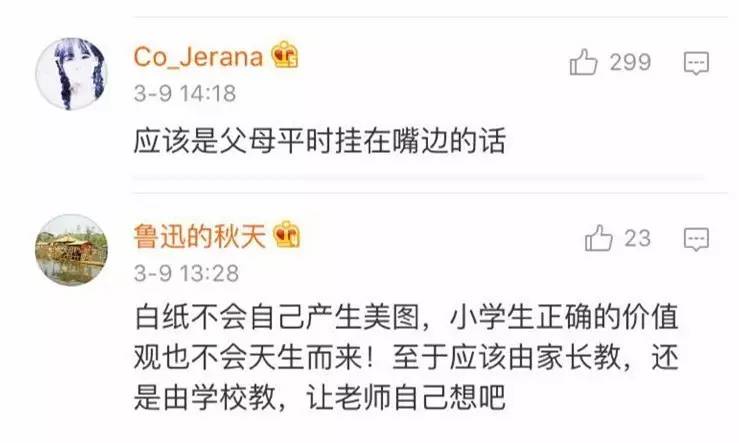 前段时间也有一条上了微博热门的小学生作业——一个二年级的造句竟然让老师写下了“请树立正确的价值观”的评语。