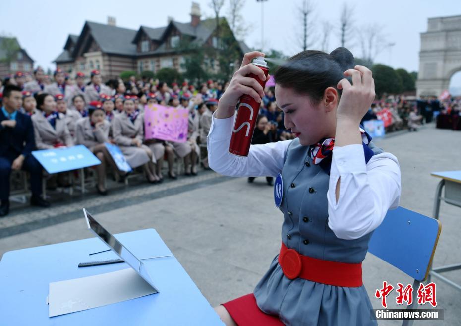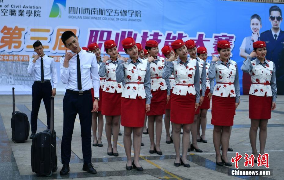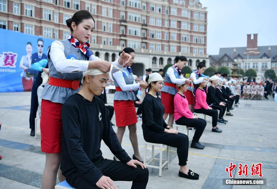 3月29日,四川西南航空职业学院举办职业技能大比武,来自该学院空乘、空保专业的400余学生就乘务员餐车速配、擒拿格斗、水陆撤离等展开了现场比拼,比武旨在提升学生们的专业技能水平,以赛促训。刘忠俊摄