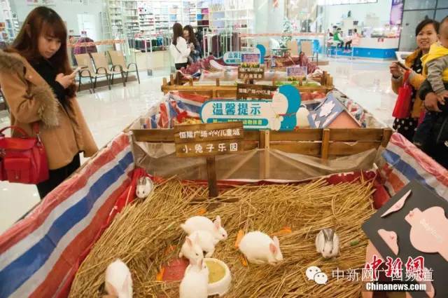 柳州市多家商场内最近出现了“动物养殖园”,养殖兔子、鸭子和仓鼠等小动物让顾客在购物的同时感受亲近自然的乐趣。吸引了许多顾客。