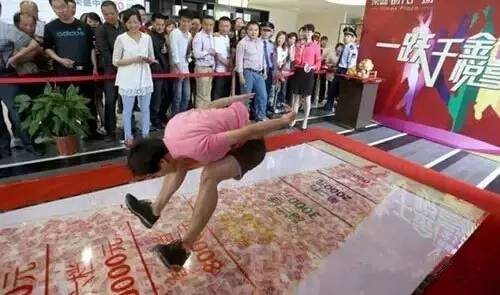 立定跳远定折扣:某售楼处用10万人民币铺在地上,购房者立定跳远,跳多远,就优惠多少,令买房人大汗淋漓……