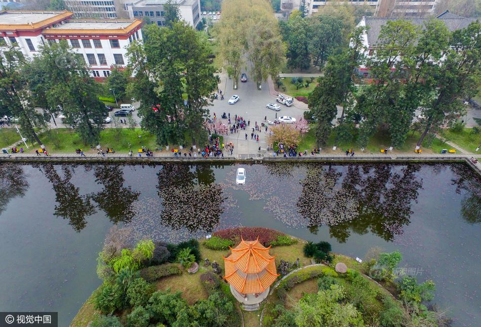 王师傅说,当时他正拉着乘客从川大博物馆往南门走,一辆白色SUV从他左前方突然冲过来,径直开上路边台阶,然后撞垮荷花池边的石凳后掉入池中。