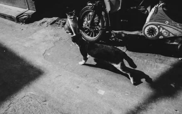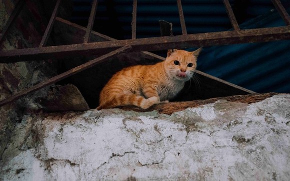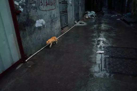 如今大部分住宿都成了空宅,一些废墟也成了流浪猫的栖息之地。这天巷子里正好下雨,遇见了两只可爱的大胖橘猫不知所措地在雨中来回奔走寻找庇护的地方。