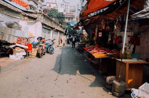 住在城中村里,你总能看见简陋的菜市场,在这里可以买到比超市便宜的新鲜果蔬。