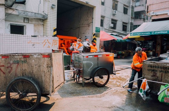 迁拆中的大新村,为了保持整洁,随处可见正在忙碌打扫的环卫工人。