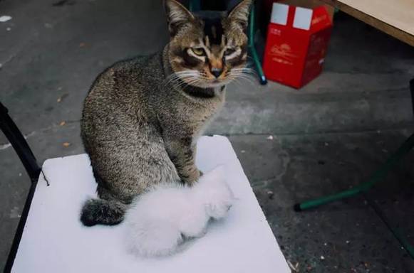除了带饭菜,这个来自潮汕的大姐还自己掏钱给流浪猫们买猫粮,每天都会走访大街小巷里给流浪猫们喂食。