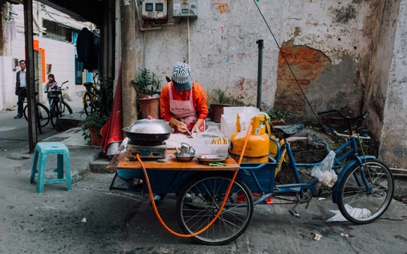 卖可口小吃的摊位络绎不断地推着车子停在街头巷尾,走到哪里都可以闻到阵阵让人嘴馋的食物香气。