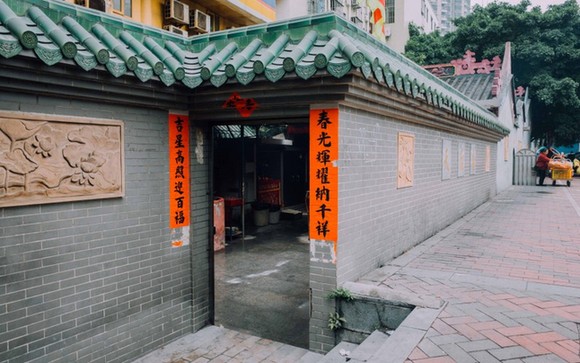 位于大新地铁站D出口对面马路的天后庙,庙口虽小但庙内却十分干净整洁,香火万盛。