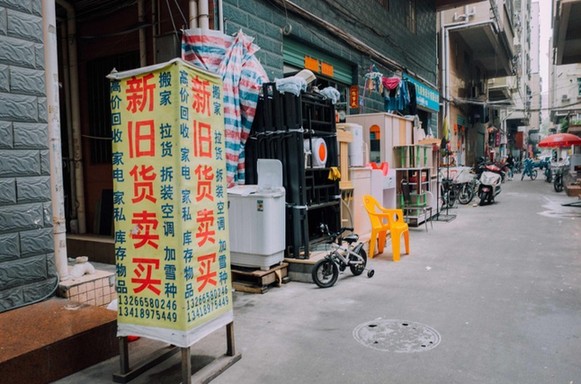 在大新新村不时可以看见旧货买卖的商铺。一些为了节省家私支出的年轻人会选择购买二手家具,而真正带动旧货买卖生意的是大新新村周边一些正在拆迁的城中村。