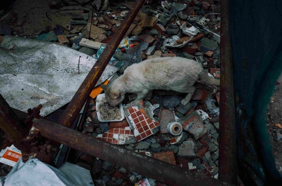 在最近一次寻访的大新村的过程中,遇到了一个正在巷子里喂养流浪猫的大姐。她说:“这些猫不是我养的,这里拆了,很多猫都是被遗弃的,我只是想做点善事给它们点吃的。”