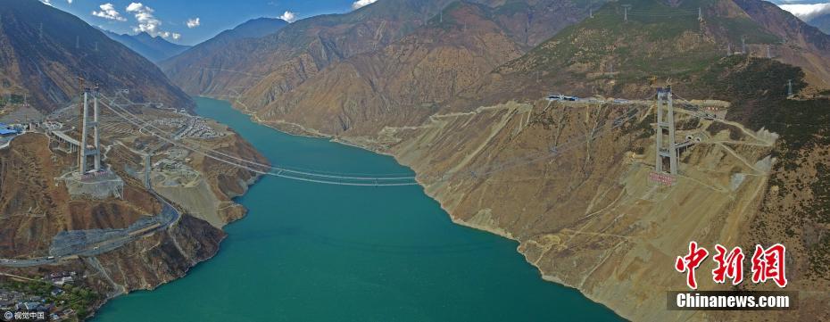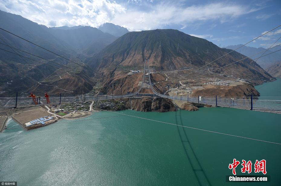沿国道318线,从泸定往康定走,大约20分钟后,就能看到雅康高速泸定大渡河兴康特大桥的建设现场。作为超大跨径悬索桥,河中没有桥墩,而是在两岸修建两座索塔和两个锚碇,作为支撑和受力,桥面以悬索拉升。2016年12月20日,雅康高速施工人员利用无人机牵引猫道(施工便道)的第一根绳索跨越大渡河。据介绍,猫道最高点距大渡河水面364米,最低点269米。沿着猫道从大桥一端走向另一端(1631米)大概需要1个半小时。王勤 摄 文字来源:成都商报 图片来源:视觉中国