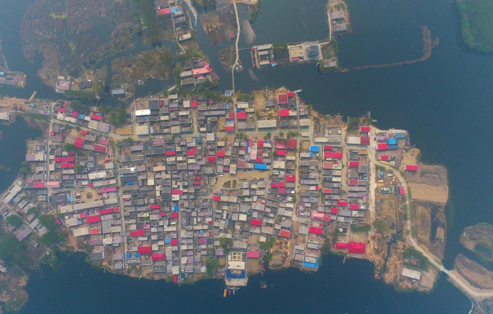 河北省保定市安新县圈头乡东田庄村位于白洋淀腹地,四面环水,在上帝视角下惊艳动人。