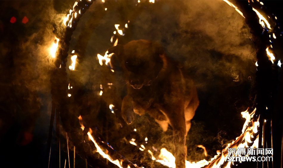 “道海,上!”蔡柏熹一声令下,和“道海”如离弦的箭冲了出去。但见,“道海”却在离火圈不二十厘米的地方停了下来。原来,火圈由之前的单个变成了重叠的五个,火苗猛蹿、浓烟弥漫,离火圈二、三米都能感受扑面而来的热气。