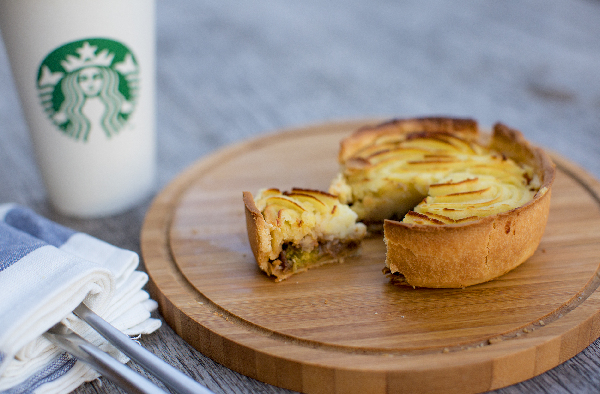 极具英伦范儿的牛肉薯蓉派,以绵密的手织薯蓉条做派顶,红酒牛肉丁及清脆豌豆做内馅,加入奶油烘烤后外焦里嫩,派皮酥脆。牛肉薯蓉派与“爱情咖啡”的经典“80/20综合咖啡”——佛罗娜咖啡的搭配则带来了另一种意境,特有的丰富黑可可味,厚重浓郁,与牛肉薯蓉派形成完美的平衡融合,共同组成星巴克的能量组合,谁说爱情不能当饭吃呢? 不同的咖啡有着不同香味、酸度、醇度和风味,不同的咖啡搭配合适的美食,味蕾的体验才能更好的相得映彰。
