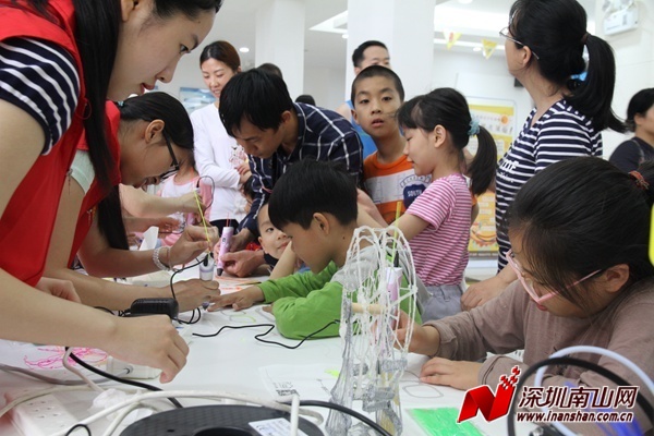 深圳新闻网南山讯(记者 王志明)烟圈大炮来袭,魔幻液氮秀表演展示了一个“新奇世界”,使家长和孩子置身与科学的海洋;在这里你可以通过3D打印笔画出立体的、色彩斑斓的图型;楼外的空地上传来阵阵呼声,孩子们正在体验酷炫的无人机和太阳黑子观测活动;除此之外,机器人、动画、编程游戏等丰富的体验活动也应有尽有。4月8日上午,2017年度南山少年创新院创新课程开班仪式暨开放日活动在南山区青少年活动中心成功举办,200余名孩子和家长投身在科普与创新的海洋中,兴致盎然,短短的三个小时转眼即逝,意犹未尽。