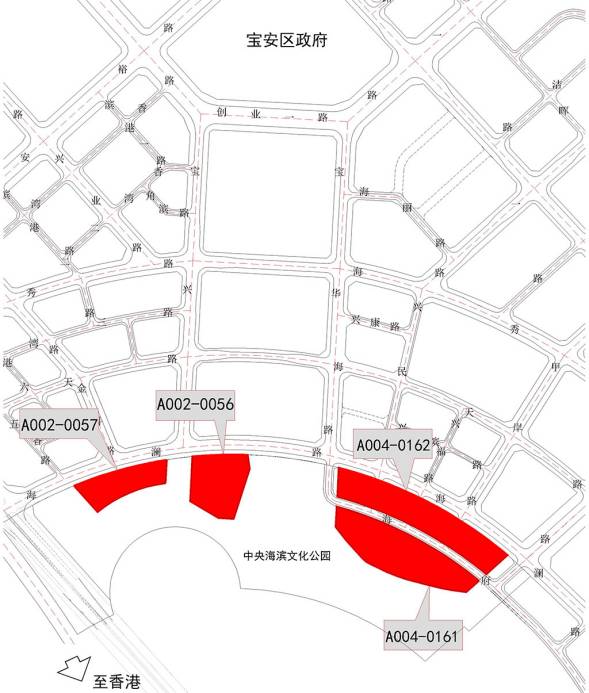 宝安中心区滨海文化公园(一期)位于宝安中心区海澜路以南、新圳河以西、沿江高速以东,占地面积38.14万平方米。包括A002-0056、A002-0057、A004-0161、A004-0162共4宗地,其中: