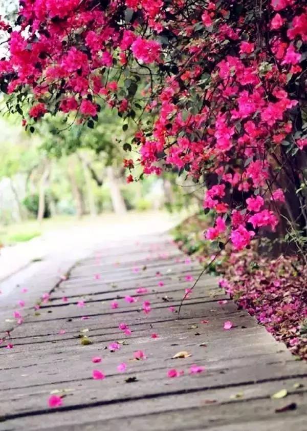 地上的花瓣,多得可以拿来铺成红毯~