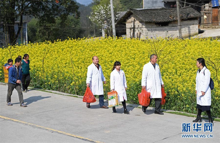 昂洞卫生院的医生走在村道上,准备前往昂洞小学开展学生心理健康辅导活动(4月1日摄)。新华社记者李尕 摄