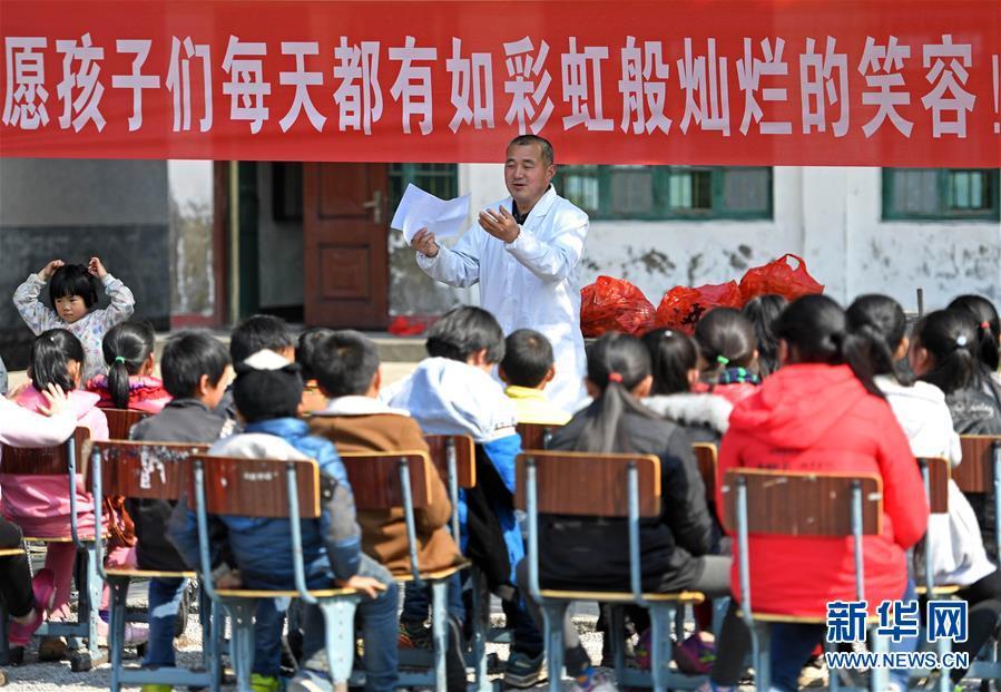 昂洞卫生院副院长彭运华在昂洞小学为孩子做心理健康辅导(4月1日摄)。新华社记者李尕 摄