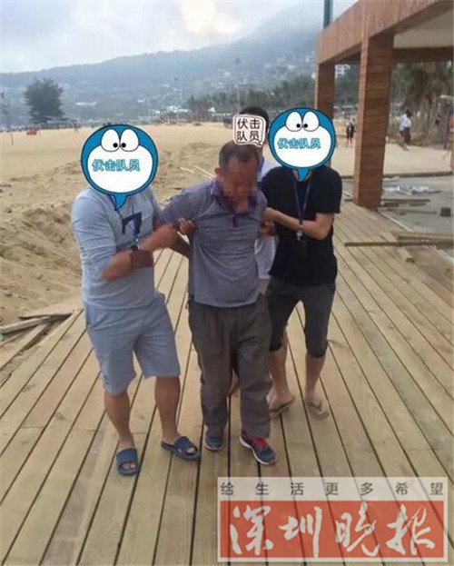这一幕被不远处反扒伏击队员尽收眼底,并立即开展抓捕行动。经过民警进一步审讯,两名犯罪嫌疑人是老乡,平时在罗湖的建筑工地里打散工,知道大梅沙海滨公园最近在施工改造,心想应该没有便衣警察,没想到这些反扒警察这么厉害。目前,犯罪嫌疑人已被警方刑事拘留,案件在进一步审理中。