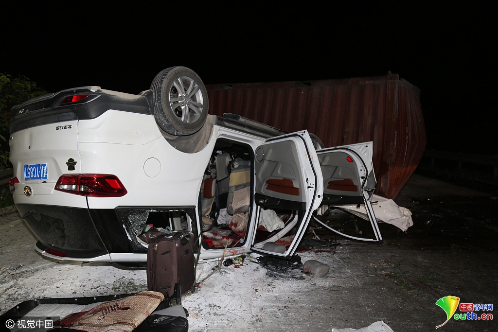 21时40分,金凯中队首先到达现场,经侦查:现场为4辆车相撞,其中3辆为货车,1辆为小轿车,共有11人被困,金凯中队立即实施救援。