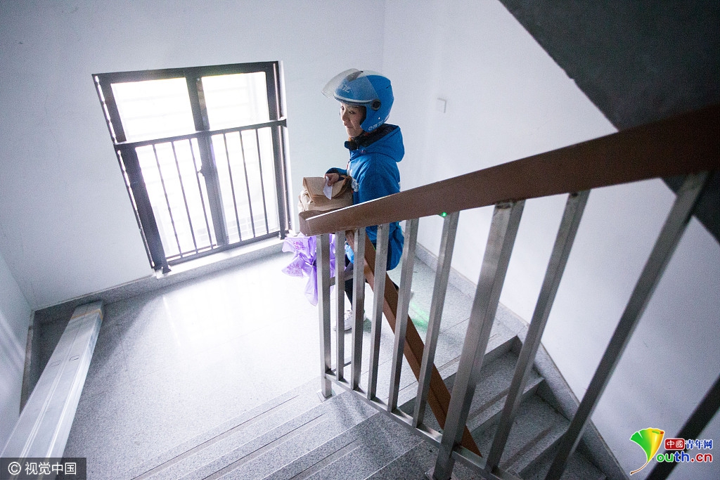 何莹珂所在的站点有近30名送餐员,大部分都是男的,只有两位女性。这个比例在杭州还算高的,据外卖机构工作人员张先生介绍,全杭州他们旗下共有3000名左右送餐员,女性员工大概只占3%左右,主要原因还是这项工作太辛苦,即使“女汉子”也不一定吃得消。