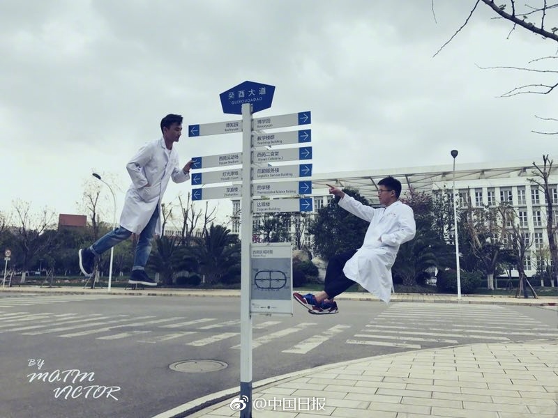 近日,来自昆明医科大学穿白大褂的学生们,在校园内拍摄了一组创意十足的照片。带着对校园的依恋及医学的敬仰,昆明医科大的学生萌生拍摄一组关于校园的照片,他们用独特的角度与别出心裁的创意,玩转悬浮,定格医学美!(记者李映青 摄影 马灯 马应清)来源微博:中国日报