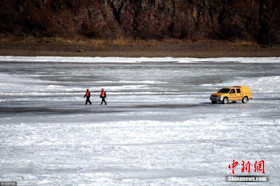 4月11日,在黑龙江省漠河县北极村,武警黑龙江省边防总队北极边防派出所官兵在中俄界江爆破现场警戒。随着天气转暖,冰封的中俄界江黑龙江即将开江,黑龙江省大兴安岭地区边防、水利、公安等多部门联动,对界江一线重点江段实施冰凌爆破,防止开江期间界江险段形成严重冰坝,避免“倒开江”引发凌汛。褚福超摄 图片来源:视觉中国