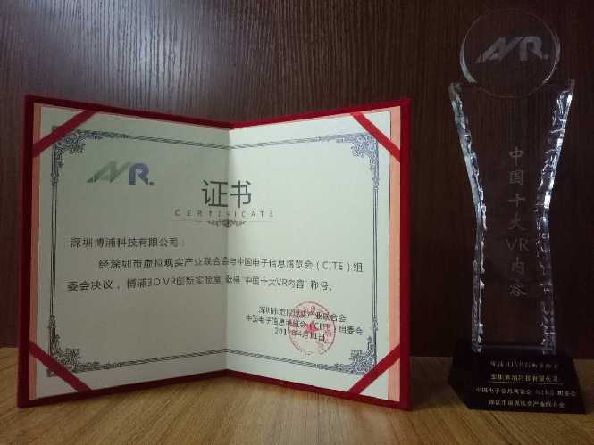 深圳新闻网南山讯(记者 王志明)4月13日,从深圳博浦科技有限公司传出喜讯,在刚结束的2017CITE VR/AR开发者应用分享峰会,该公司博浦3D VR 创新实验室喜获“中国十大VR内容”奖。