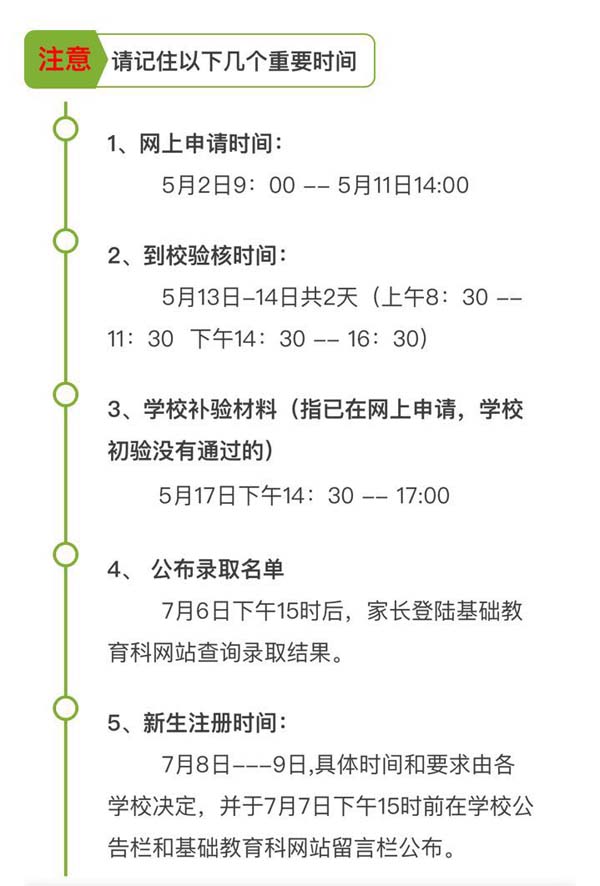 5月13日--14日家长携带入学申请材料原件(无需复印件)及《南山区2017年秋季初中一年级学位申请表》,到申请中学验核材料。