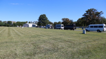 同乡会派公共汽车,带乡亲拜山。(美国《世界日报》)