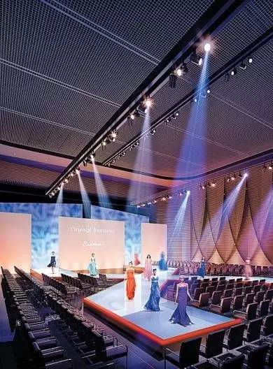 据介绍,这个秀场参照国际理念设计,天花吊装可以随着秀场的需求而变化,五彩斑斓的灯光也能营造出空间的时尚和前卫。