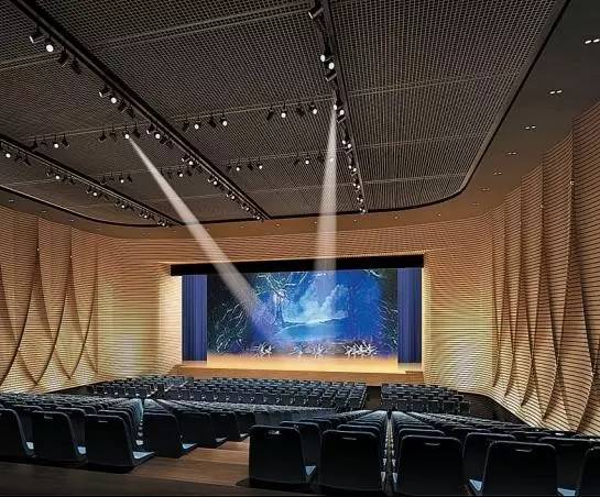 位于一楼的多功能剧场舞台和座位区已经划分出来了。据介绍,这个剧场设计简洁明快,利用材质、造型、比例、色彩、照明等多种元素完美结合,可以创造出具有丰富层次感的立体空间。