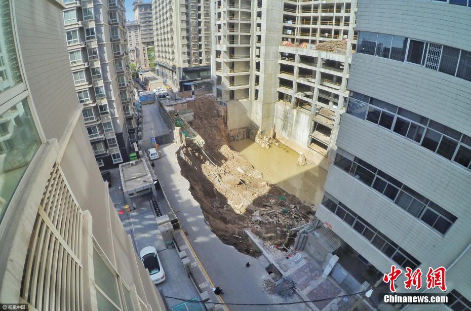 2017年4月18日,西安西华门宏城国际公寓居住的业主康先生还心有余悸:昨日凌晨2时许,在他将车挪走后没5分钟,路面就发生大面积塌陷。图片来源:视觉中国