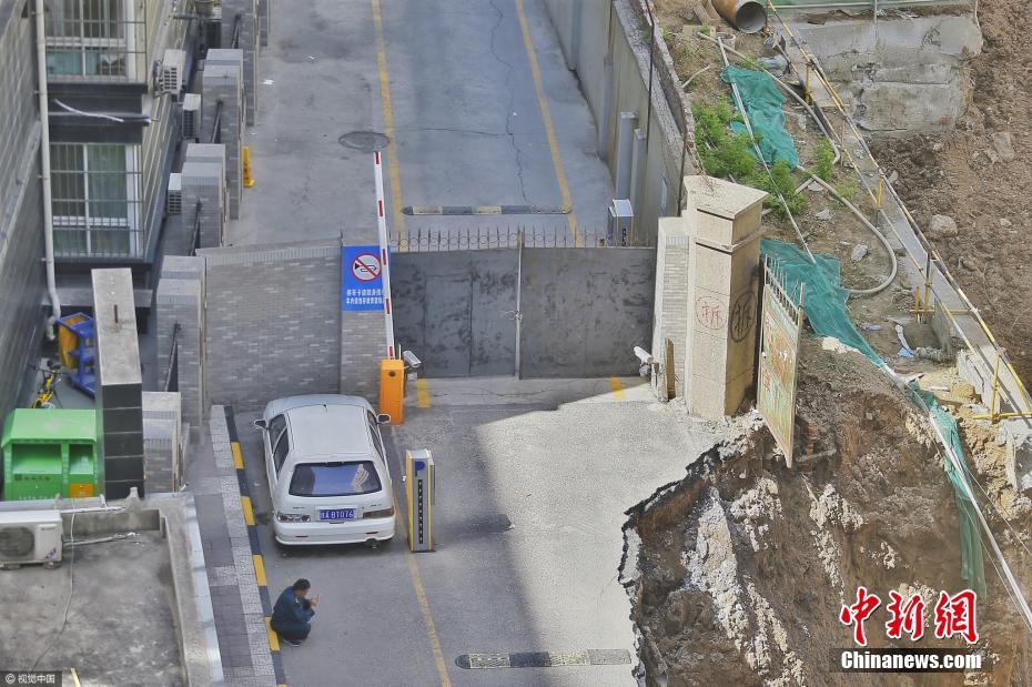 2017年4月18日,西安西华门宏城国际公寓居住的业主康先生还心有余悸:昨日凌晨2时许,在他将车挪走后没5分钟,路面就发生大面积塌陷。图片来源:视觉中国