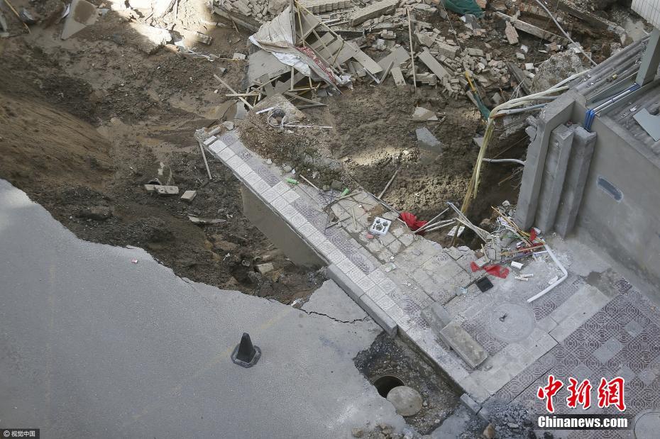 据了解,垮塌处有16米深,南北长度也有20多米,里面满是水。图片来源:视觉中国