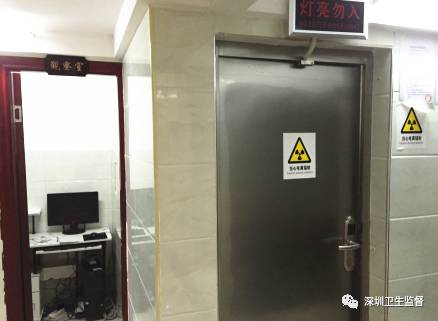 发现标着“当心电离辐射”、“灯亮勿入”的房间内放有1台牙科全景机,却没《放射诊疗许可证》。