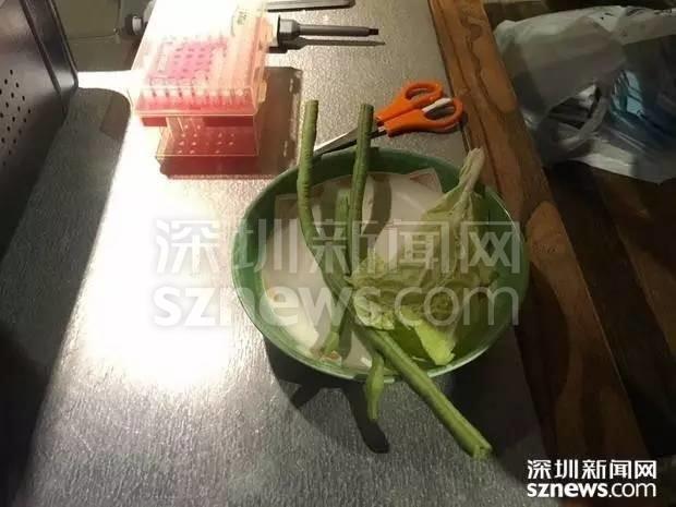 蓝马甲抽检人员取样一袋馒头做是否含明矾的快检,另外还检测了豆角和白菜的农残,结果均合格。