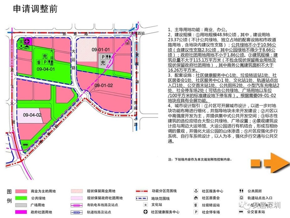 [大运新城地区]法定图则09-01-01、09-01-02、09-04-01、09-04-02地块位于龙城街道大运新城,南侧为大运场馆,与大运自然公园、国际大学园相距不到1公里。