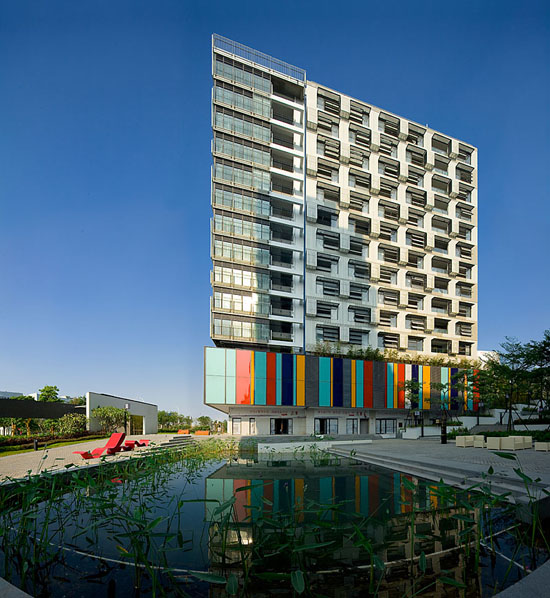 这座建筑为主题式酒店和酒店式公寓,坐落于深圳市蛇口半山区,为典型的山地地形。中国人通常使用的“山水”和“园林”表达了一种生活哲学的思想和对自然的向往。设计师运用此概念,希望能塑造全新的居住空间,将传统的居住模式和现代生活结合。