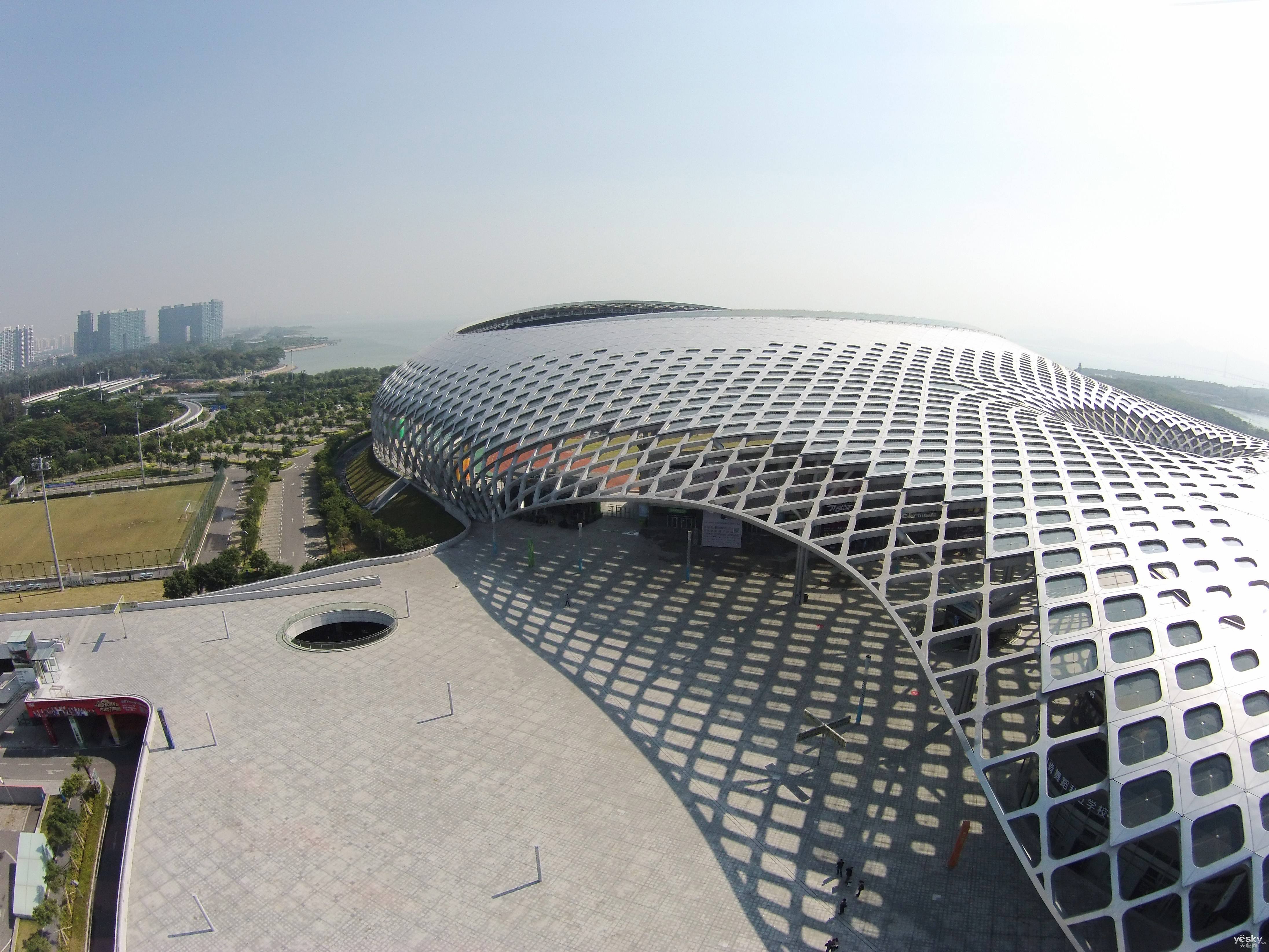 北有鸟巢,南有春茧,其中的“春茧”就是2011年第26届世界大学生夏季运动会的主会场——深圳湾体育中心,寓意“春茧”的独特设计通过银白色的巨型屋面网格结构对“一场两馆”及商业设施进行了建筑空间的一体化紧凑设计,对赛前和赛后的综合利用十分有利。