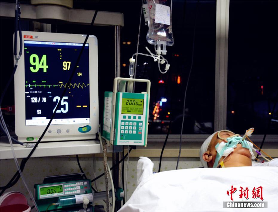 对于即将被病魔吞噬的人,各种插管的“捆绑”更像是阻止生命消逝的“纽带”。 王明宇 摄